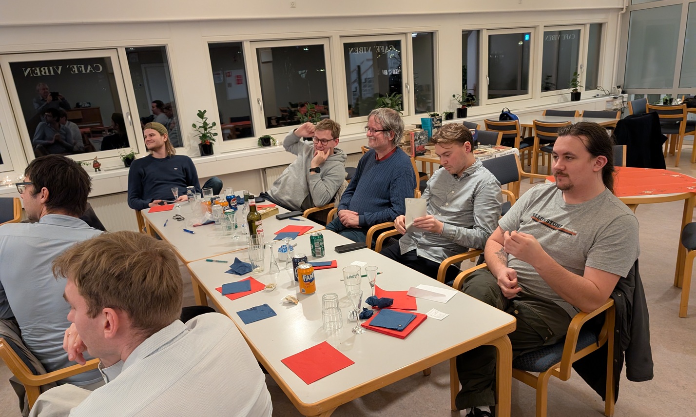 2025 sluttede med vores traditionelle julefrokost, som dog i år bød på en ny tradition, nemlig præmieuddeling for efterårsturneringen. Men ellers lignede meget sig selv, med god mad, Torbens julequiz (som Henning Matzen vandt i år) og selvfølgelig den afsluttende lynskakturnering, hvor Jens Fogh vandt endnu engang. Christian Werk tog sig af præmien i gruppe 2. På billedet øverst klapper forsamlingen af Johnny Jensen, som fik sin præmie som suveræn vinder af efterårets 1. klasse. På billedet nedenfor ser vi nogle andre af aftenens præmietagere, fra højre Salomon, Anders, Henning og Jens.